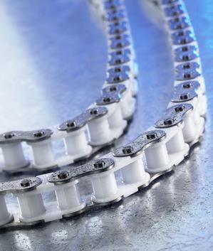Seria PC - sworznie i płytki zewnętrzne tego łańcucha wykonane są ze stali nierdzewnej SUS304. Wewnętrzne plytki oraz rolki wykonane są z plastiku. Taka kombinacja sprawia że łańcuch nie wymaga smarowania, jest cichy (o 5 dB od standardowego) oraz lekki (50% lżejszy niż standardowy). Temparatura pracy: -20°C to +80°C. Dostępny standard BS oraz ANSI.